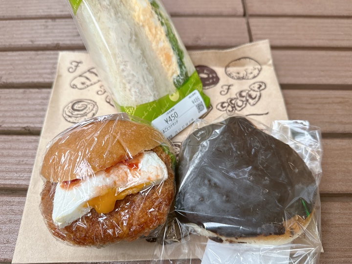 さすがフジパン!パン生地、美味しいですね~。購入したたまごとツナサンドのサンドイッチ、パンがフワフワで美味しかった~。その他にはシェルドーナツ(チョコ)とコロたまバーガーの3つを購入。ここまで車椅子自走で結構な距離をこいできたのでお腹がめちゃくちゃ空いていて、このコロたまバーガーのボリュームが最高でした!デザートにはシェルドーナツ(チョコ)を。ふんわり軽い口当たりでこちらも美味しかったです!