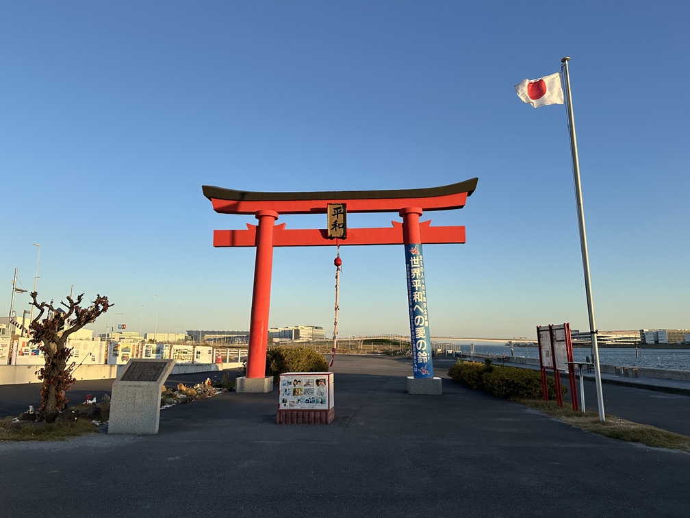 そしてHANEDA INNOVATION CITY方面に戻ってきて、多摩川沿いにはこんな大きな鳥居が鎮座!