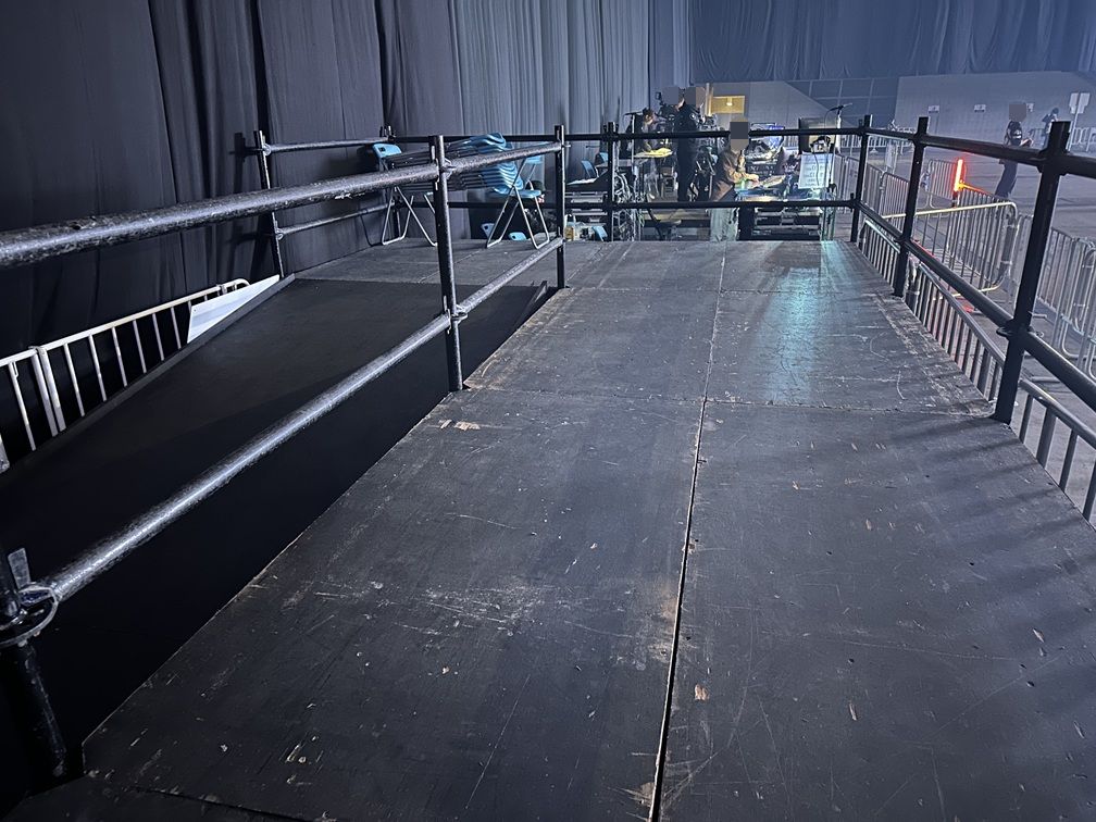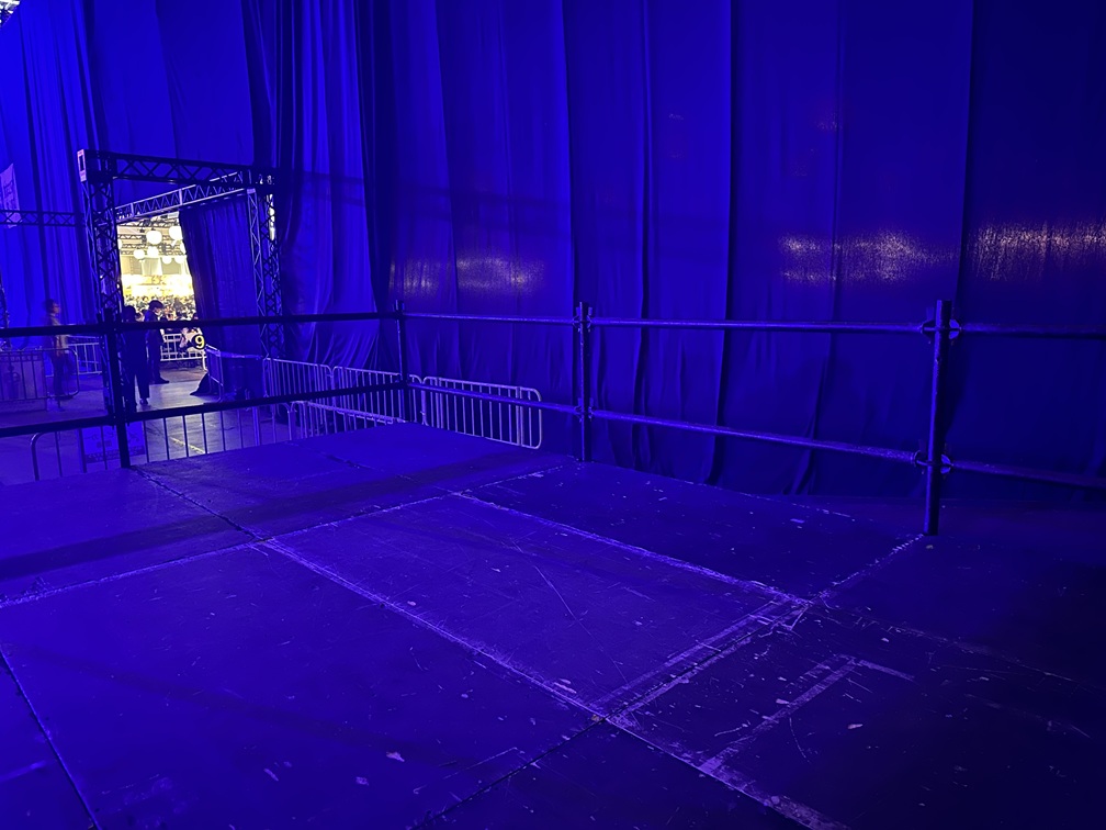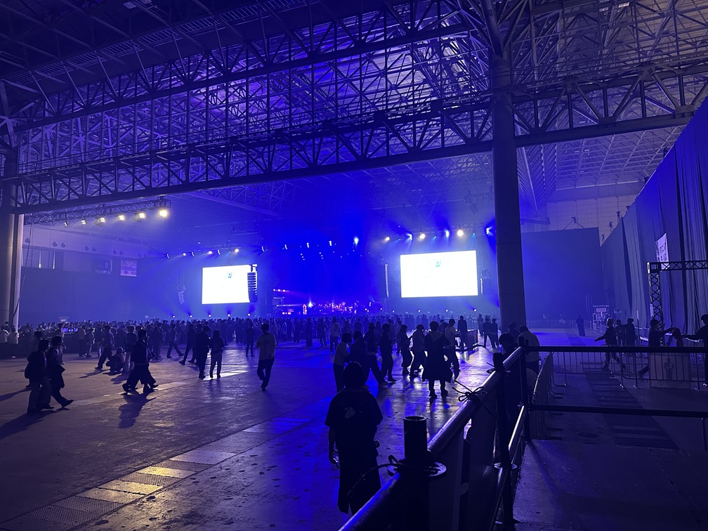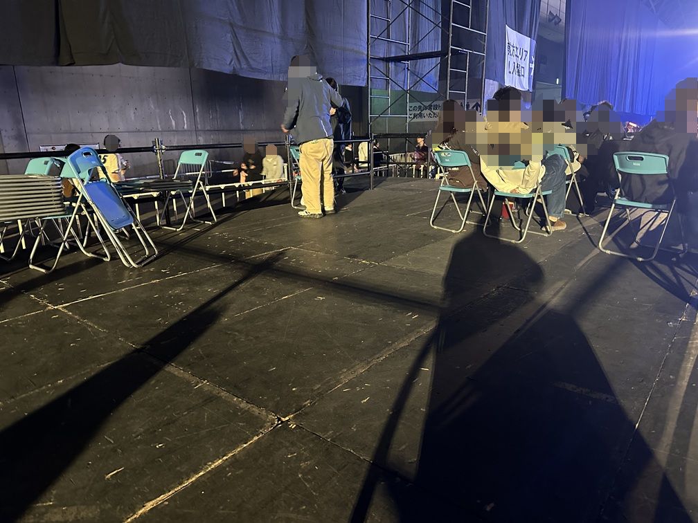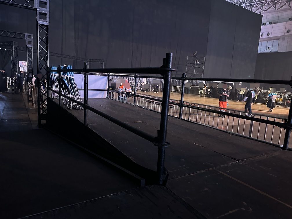 こちらが GALAXY STAGE にある車椅子観覧スペースから見たステージです。写真だと若干遠いと感じるかもしれませんでが、実際はそれほど遠さは気になりませんでした。大きなモニターもありますし、何と言っても音が大きいので迫力はあります。