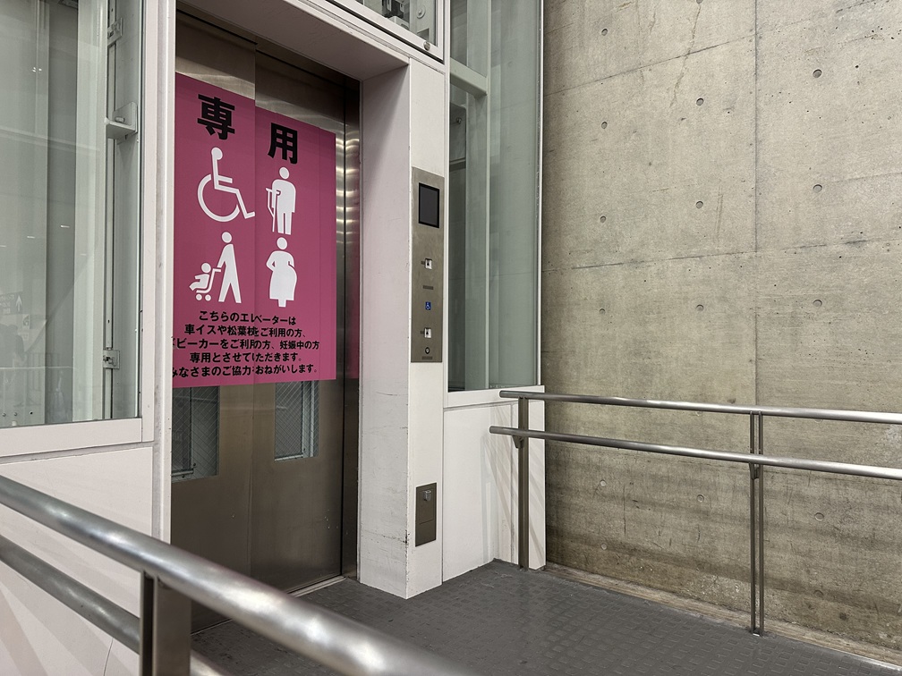 開場してしまえば、建物内にはエレベーターがあるので、車椅子で1階に下り、2階に上がる事は全く問題ありません。