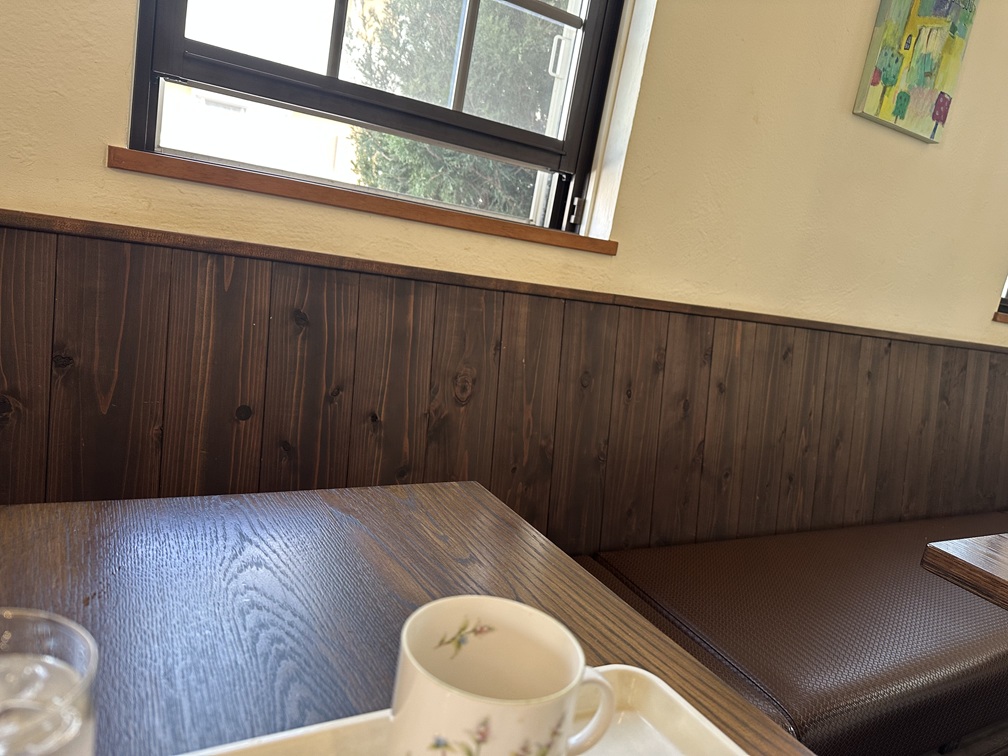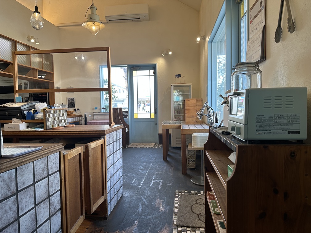 ちょっと奥に他のお客さんがいらっしゃったので変な画角の写真になってしまっていますが(笑)こちらがイートインスペース。私が1番手前のテーブルで、奥に後2つテーブルが並んでいます。